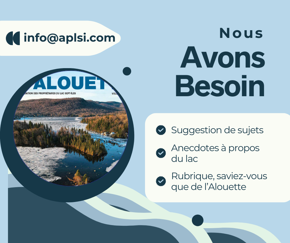 Bienvenue au lac Sept-Îles! Rejoignez notre communauté en devenant membre de l’Association des propriétaires du Lac Sept-Îles (APLSI). Découvrez tous les avantages de notre association et restez à l’affût de nos publications pour ne pas manquer notre prochain événement d’accueil réservé aux nouveaux résidents.
