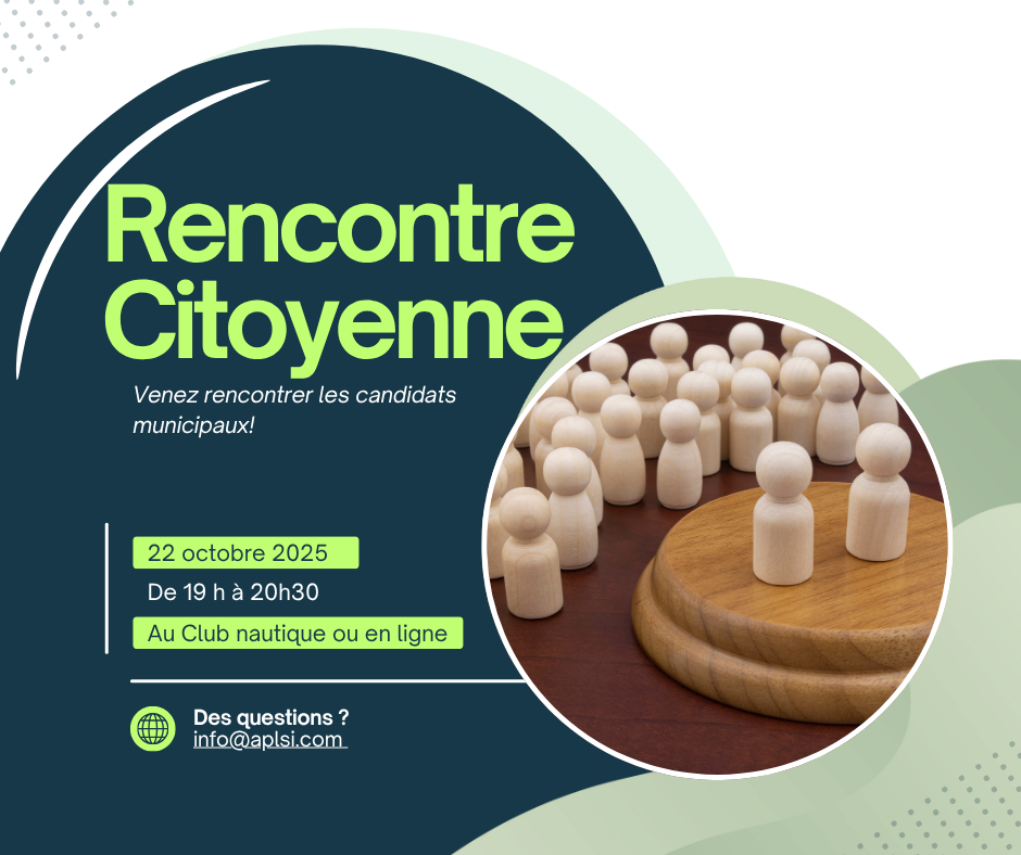 Venez rencontrer les candidats municipaux! Ce mercredi, le 22 octobre, l’APLSI organise une soirée d’échange avec les candidats aux élections municipales. Ce sera une occasion de nous partager leurs idées Lire la suite